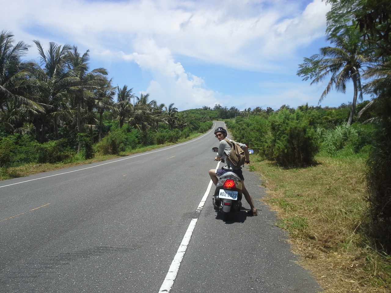After about forty minutes, all trail markers have disappeared...or at least all of the trail markers that read "PEAK xxxx m". Eventually we come to a fork with the sign pointing right telling us that it leads to a village...which is appearing on a sign for the first time...and a trail leading left which again leads to a place that was previously unlisted. At this exact moment, a pack of young Koreans on ATVs come charging up the trail behind us. Perfect! we think. We know enough Korean to ask them directions to the top of the mountain. Unfortunately, these young guys are so dumbfounded that the four of us are hiking to the top of a mountain at this hour, that they spend quite some time laughing at us and asking us why we're doing what we're doing. Finally, one of them jogs a few feet up the leftward trail and tells us that we're almost at the top. The top, he says, is at the end of the trail going left.